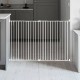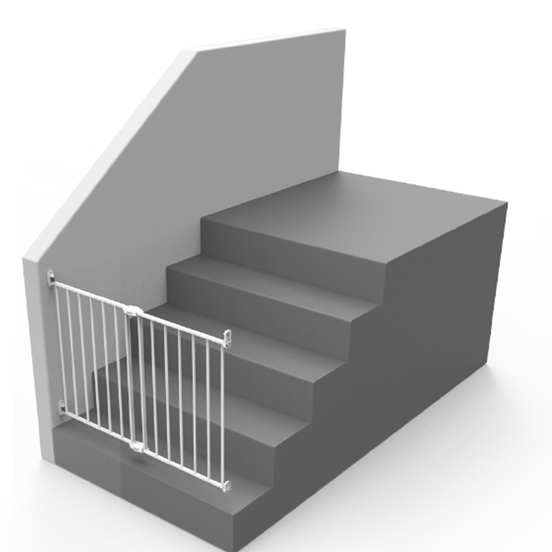 Extends from 82cm to 142cm. This extra-wide, extendable baby gate with fit any space from 82cm to 142cm ( including brackets) without the requirement of any additional baby gate extensions.